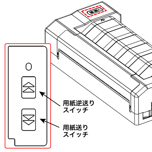 用紙が斜めに入ったりした場合には、用紙逆送りまたは用紙送りスイッチを押して一旦用紙を取り出し、再度まっすぐにセットしなおします。
