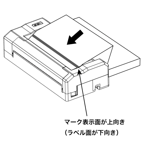 用紙の裏面(マーク面)を上にした状態で、まっすぐ差し込んでください。